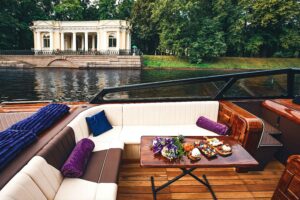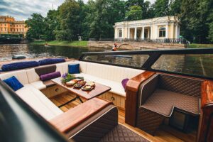 Стильный катер для искушенных гостей. Идеально подходит для прогулок с друзьями, фотосессий и девичников.