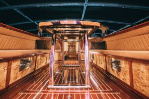 Вместимость 9 человек Тент от дождя и солнца Пледы Аудиосистема с возможностью подключения по Bluetooth Бокалы (кол-во под запрос) Ведро для шампанского (под запрос)9000 руб/час