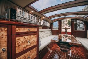 Вместимость 9 человек Тент от дождя и солнца Пледы Аудиосистема с возможностью подключения по Bluetooth Бокалы (кол-во под запрос) Ведро для шампанского (под запрос)9000 руб/час