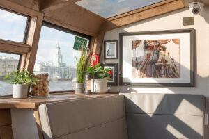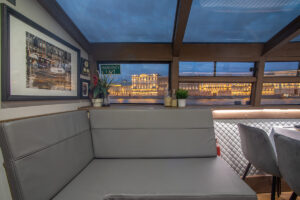 Пассажировместимость 35 человек. Банкетная рассадка на 20 гостей за разными столами. Банкетная рассадка на 12 гостей одним столом. Фуршетная рассадка до 30 гостей.7 500 руб\час