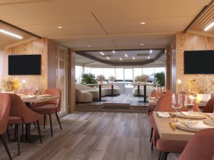 Нижняя палуба: Уютный ресторан с продуманным интерьером. Идеально для корпоративов, свадеб и юбилеев.