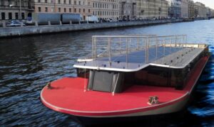 Теплоход класса Гранд Фонтанка.Закрытый салон, в салоне 10 столов и 50 стульев, плазма, микрофон, встроенная аудиосистема, барная стойка, санузел.