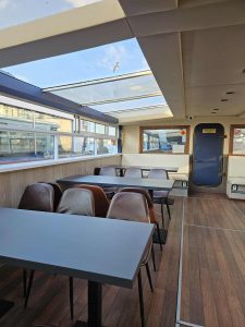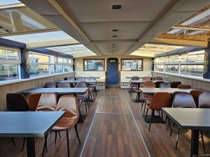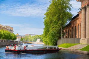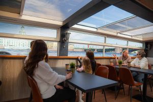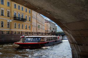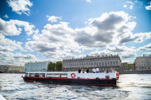 Уютный теплоход для прогулок по Санкт-Петербургу.