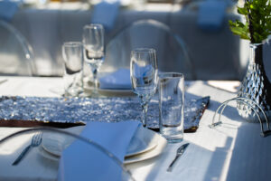 Банкетная рассадка на 22 гостей одним общим столом.