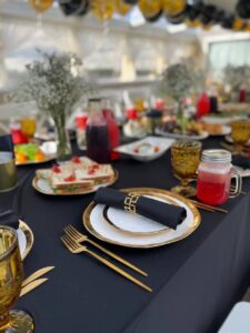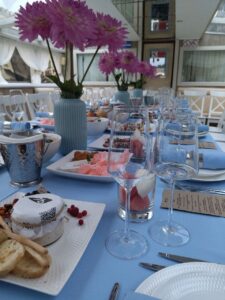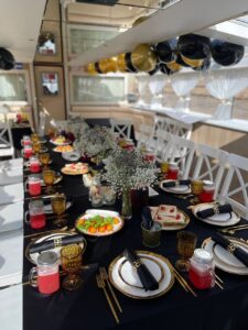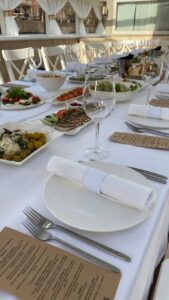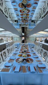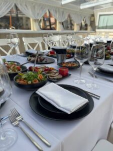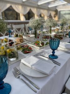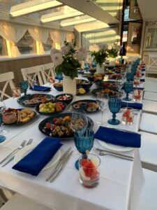 Банкетная рассадка на 22 гостей одним общим столом.