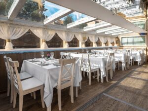 Реновация 2023 год.Закрытый салон, в салоне 4 стола и 16 мягких кресел, 2 диванчика, плазма, микрофон, встроенная аудиосистема, барная стойка, кондиционер, санузел.