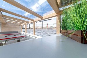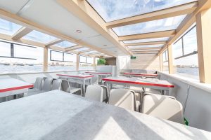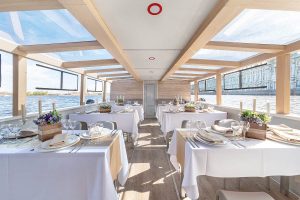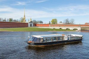 Уютный теплоход для прогулок по Санкт-Петербургу.