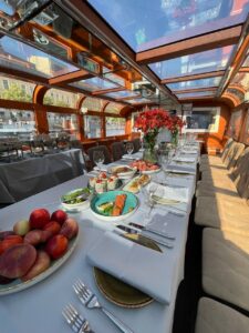 Свадьба на теплоходе — это незабываемая атмосфера, где каждую минуту сменяются виды из окна и множество потрясающих фотографий с воспоминаниями на всю жизнь. Мы проводим как камерные свадьбы до 20 гостей на наших небольших теплоходах, так и свадьбы до 130 гостей на двухпалубных теплоходах. Поможем организовать свадьбу «под ключ».