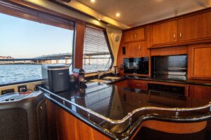 Идеальный вариант прогулочной яхты для вашего мероприятия будь то семейное торжество или дружеская вечеринка. Яхта вмещает до 15 пассажиров на дневную прогулку и 6 пассажиров на многодневное путешествие. Крытый флайбридж позволит насладиться морскими видами и не обгореть на солнце, также на верхней палубе есть столик и раковина.